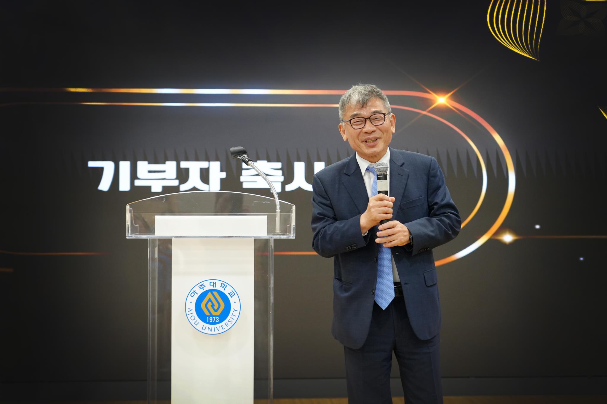 최종욱 기부자는 축사를 통해 “기업을 경영하며 해외를 다니다보면, 40~50년 전 가방 하나 들고 전 세계를 누볐던 김우중 회장 같은 기업인 그리고 열심히 일했던 제조업 노동자들의 힘이 모이고 쌓여 오늘날의 대한민국이 되었음을 실감하게 된다”며 “앞으로는 과학·공학 분야의 첨단 기술과 공헌이 대한민국을 이끌어 갈 것이기에, 오늘의 이 성과는 아주의 영광이자 대한민국의 자랑”이라고 말했다.