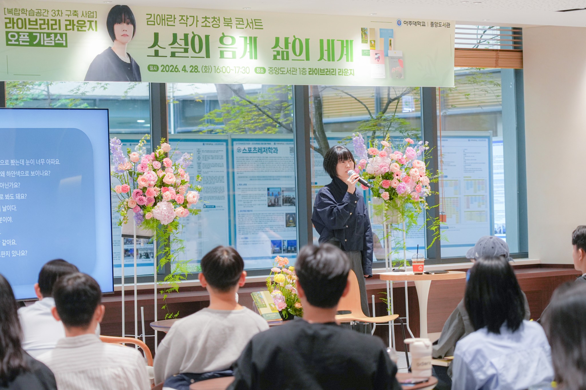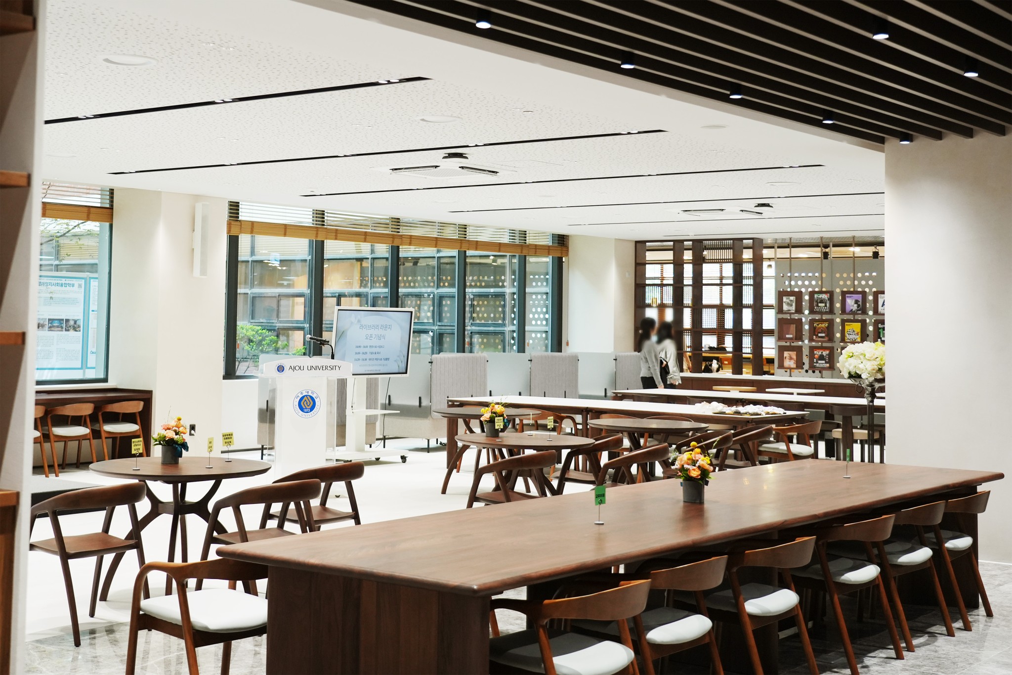 아주대학교 중앙도서관 1층 라운지가 리모델링 공사를 마치고 오픈했다. 이번 리모델링을 통해 도서관은 책과 문화가 함께 흐르며, 학습과 휴식이 모두 가능한 복합 공간으로 재탄생했다.