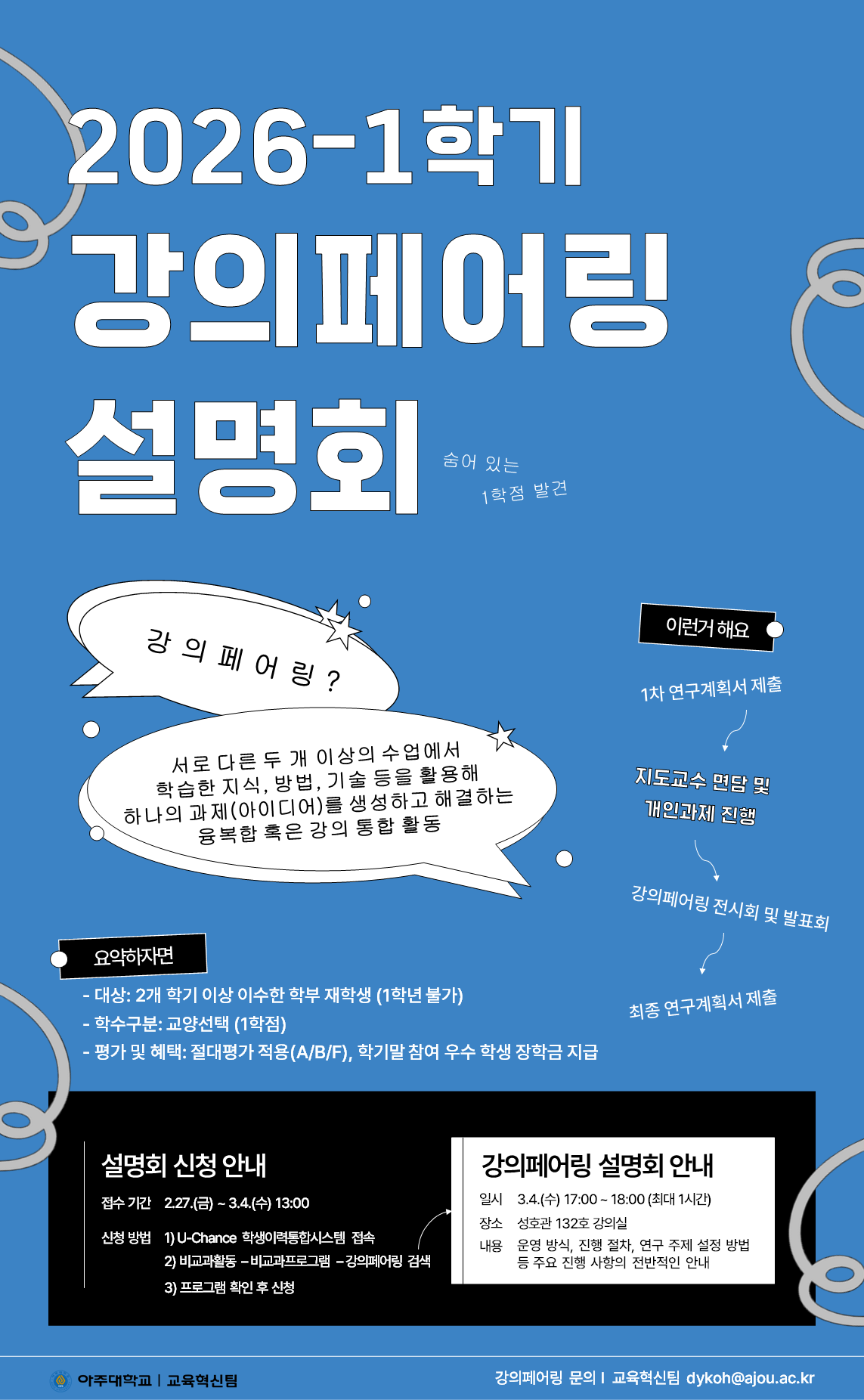 [학사] 2026-1학기 강의페어링 설명회 안내(오늘! 17시 성호관)