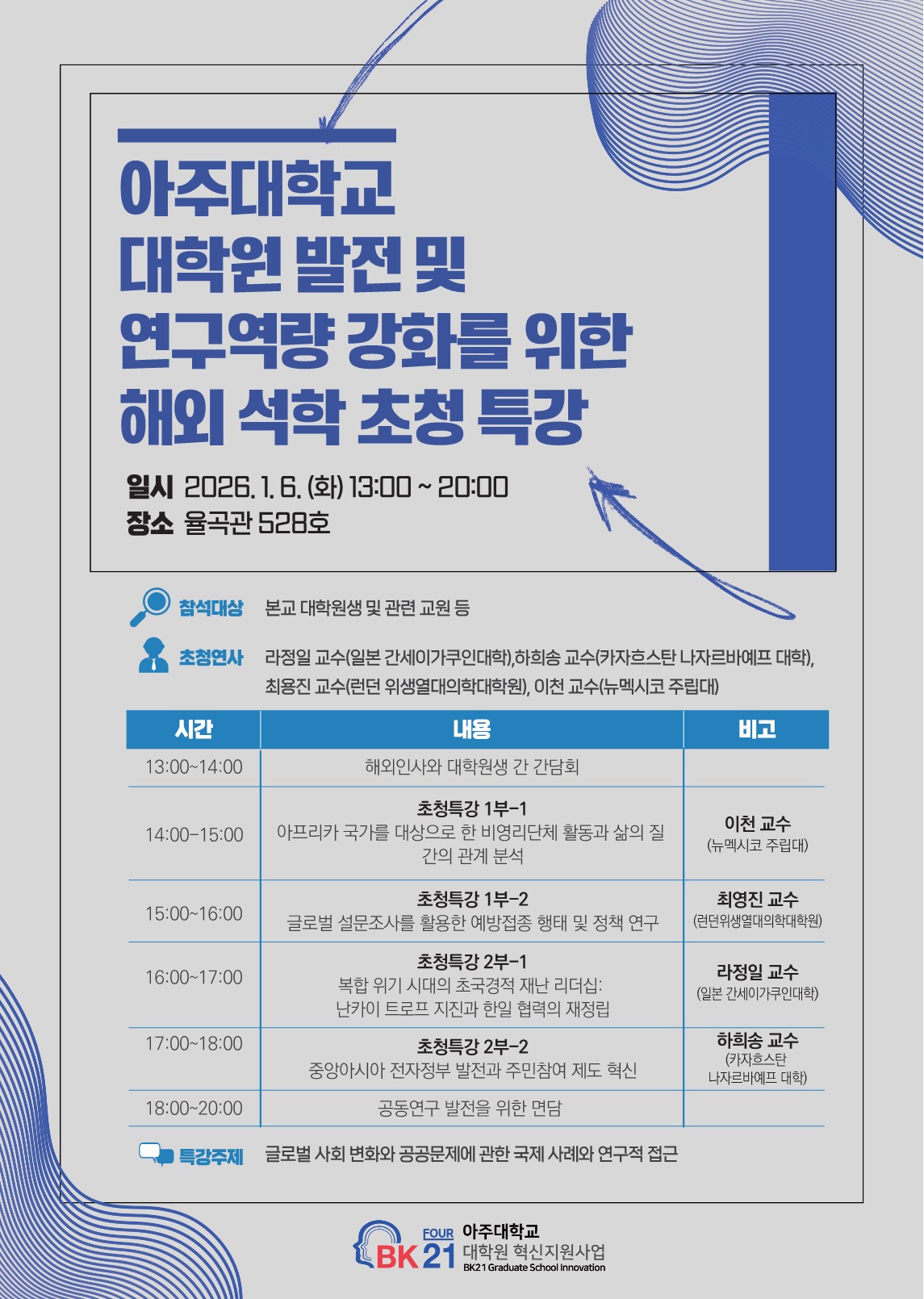 | 1882 | 세미나/포럼 | 교내 | 박미연 | 2026-01-27 | ||